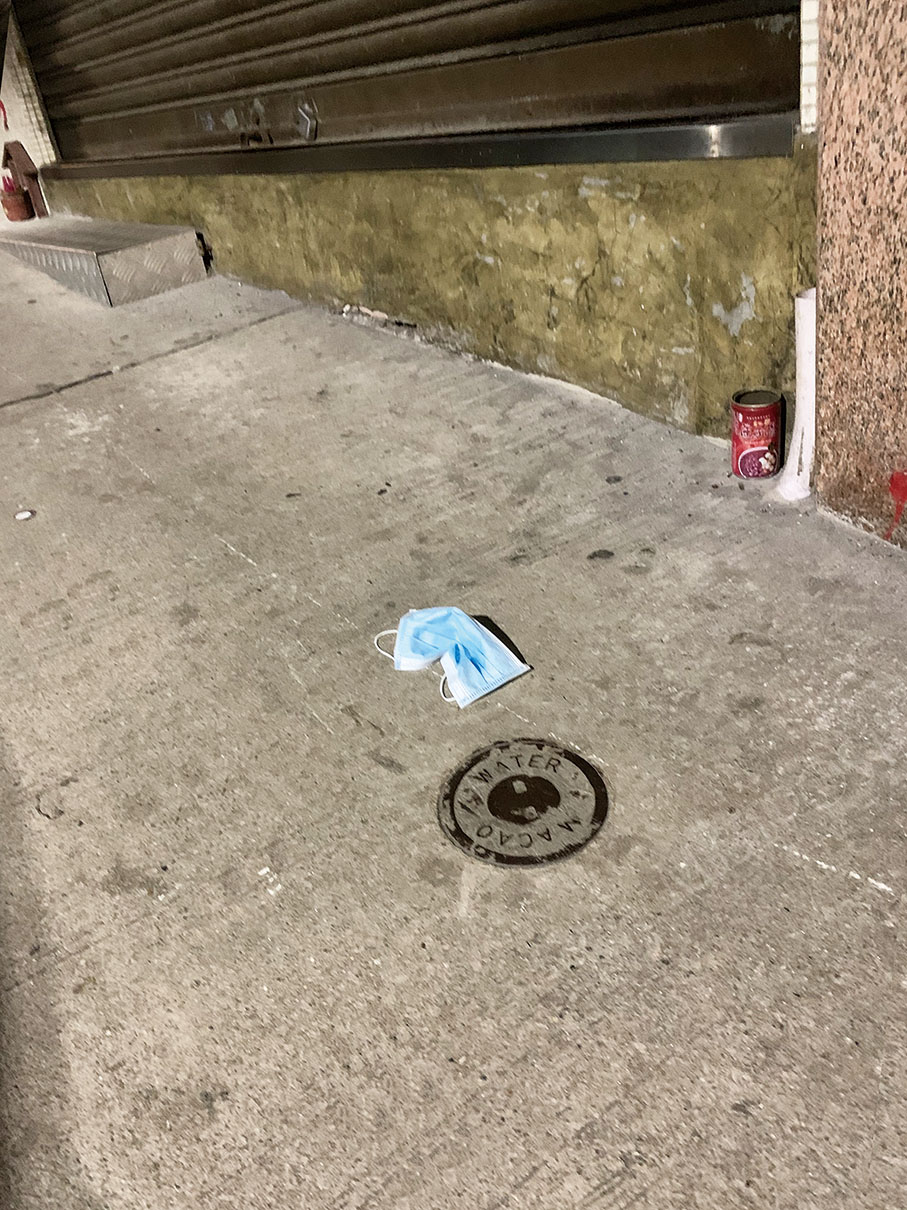 A used facemask has been dumped in a street near Lou Lim Ieoc Garden.