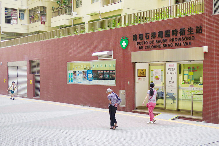 Pedestrians walk past the Health Bureau’s (SSM) provisional health centre in Seac Pai Van yesterday. Photos: Davis Ip