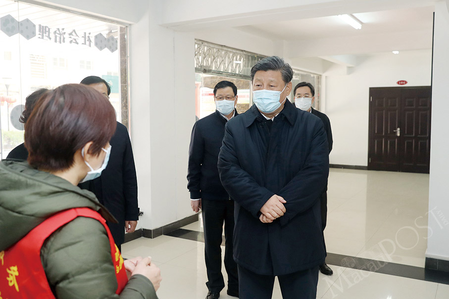 President Xi Jinping talks with a community worker during his COVID-19 prevention and control inspection visit to Wuhan. – Xinhua
