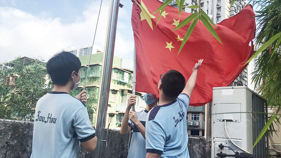 Lou Hau High School pupils conduct a national flag-raising ceremony yesterday.