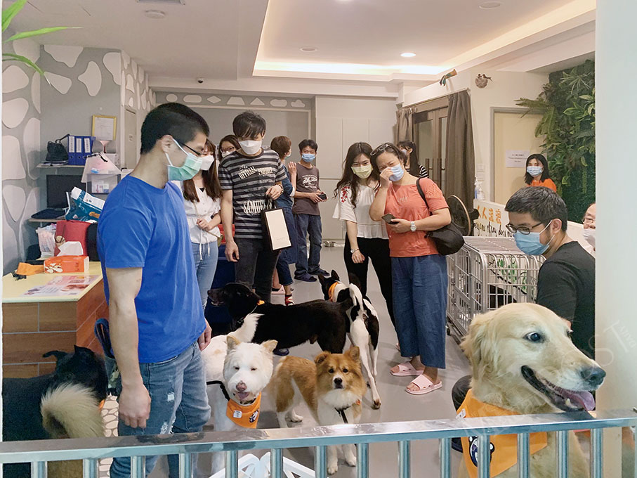 According to the FB page, Caring Adoption Day restarted on April 25 after it had been suspended in line with the government’s COVID-19 epidemic prevention measures. About 60 dogs were up for adoption at the two events.