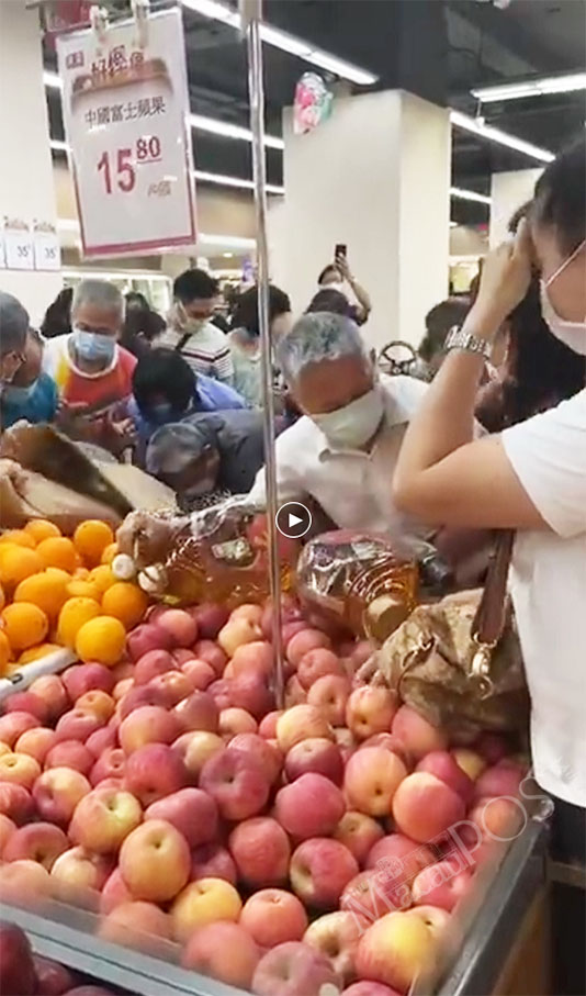 Another video shows police officers maintaining order at one of the branches, while a lady behind the camera said that bottles of cooking oil on special offer had been sold out when people entered the supermarket when it opened the doors to the public.