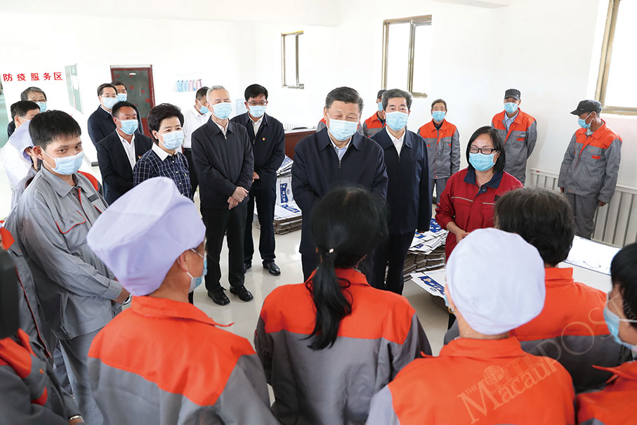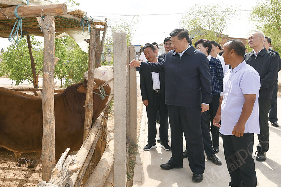 President Xi Jinping visits a cattle farm in Hongde village of Wuzhong city, Ningxia Hui Autonomous Region, yesterday. Husbandry is one of the poverty alleviation strategies of the region. – Xinhua