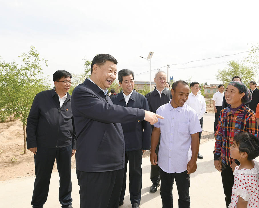 President Xi Jinping learns about efforts to advance poverty alleviation during yesterday’s visit to Hongde village of Wuzhong city in the Ningxia Hui Autonomous Region. – Xinhua