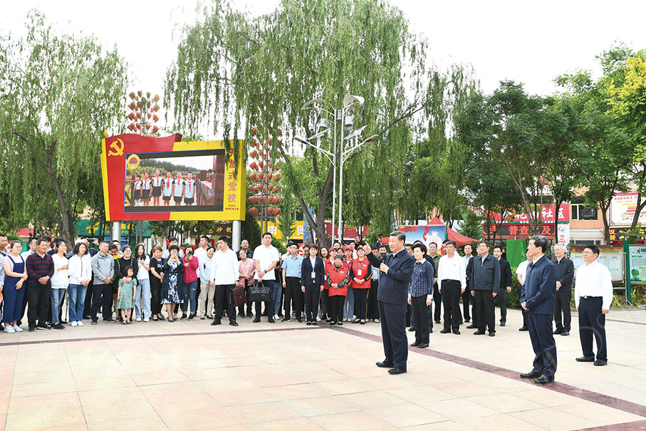 President Xi Jinping talks to residents about efforts to promote ethnic unity during his visit to the Jinhuayuan community in Jinxing township of Wuzhong city in the Ningxia Hui Autonomous Region yesterday. – Xinhua