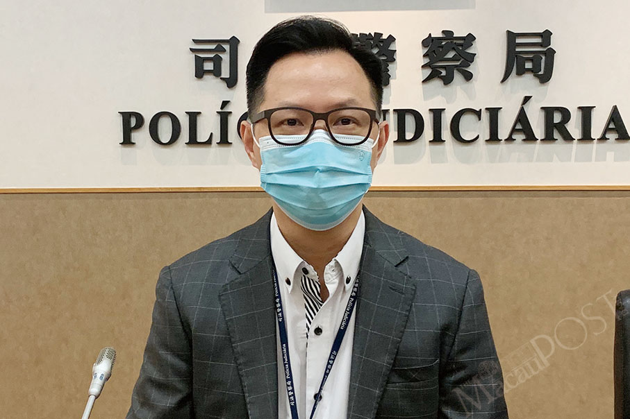 Judiciary Police (PJ) spokesman Ho Chan Nam pose during yesterday’s regular press conference. Photo: Camy Tam