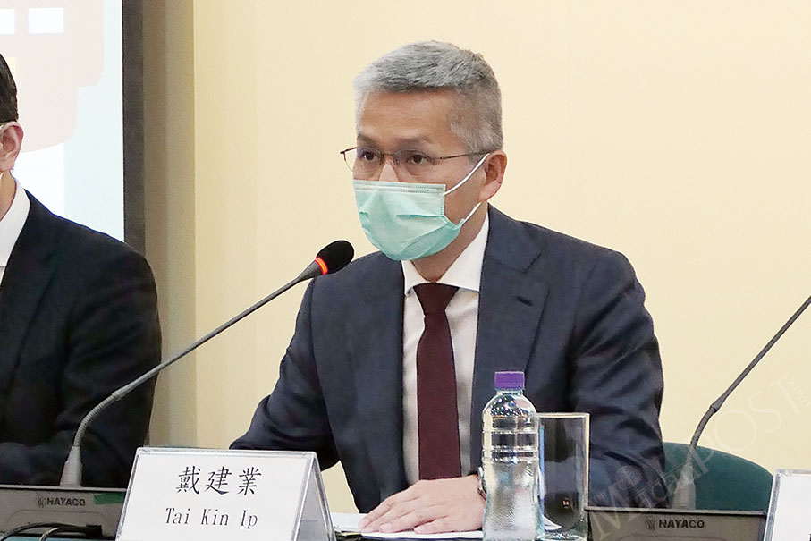 Economic Services Bureau (DSE) Director Tai Kin Ip speaks addresses yesterday’s press conference about the government’s consumption subsidy smartcard at China Civil Plaza in Nape yesterday. Photos: Monica Leong