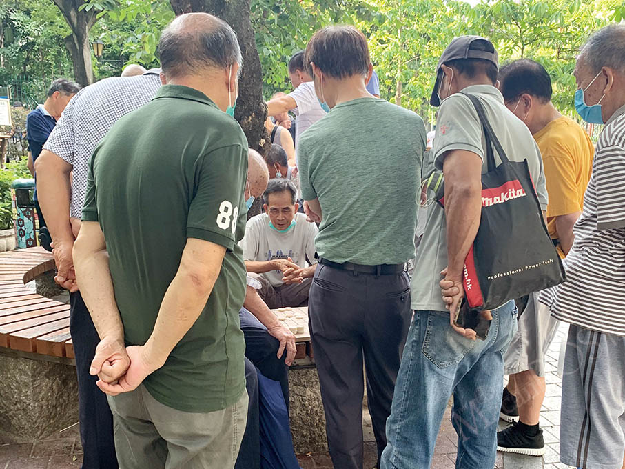 Men gather to watch people play Chinese chess in Camões Garden. Photos taken yesterday by Camy Tam