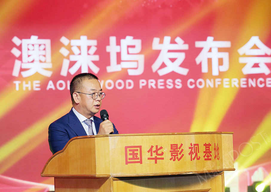 Wang Haige, the initiator and organiser of the “Mollywood” film hub project, gives a speech at the project’s unveiling ceremony in Lanfang earlier this week. Photo: Business Wire