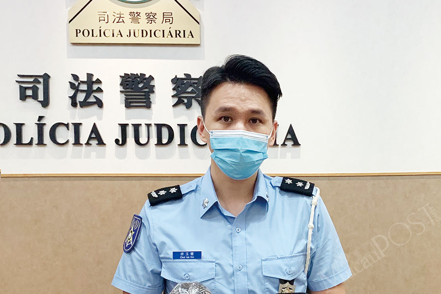 Public Security Police (PSP) spokesman Choi Iok Kin poses during yesterday’s regular press conference. Photo: Camy Tam