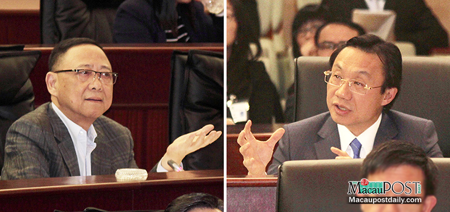 The combo photo shows Secretary for Social Affairs and Culture Alexis Tam Chon Weng (right) and legislator-cum-developer Fong Chi Keong speaking during yesterday’s plenary debate in the legislature’s hemicycle yesterday. –Photo: Davis Ip