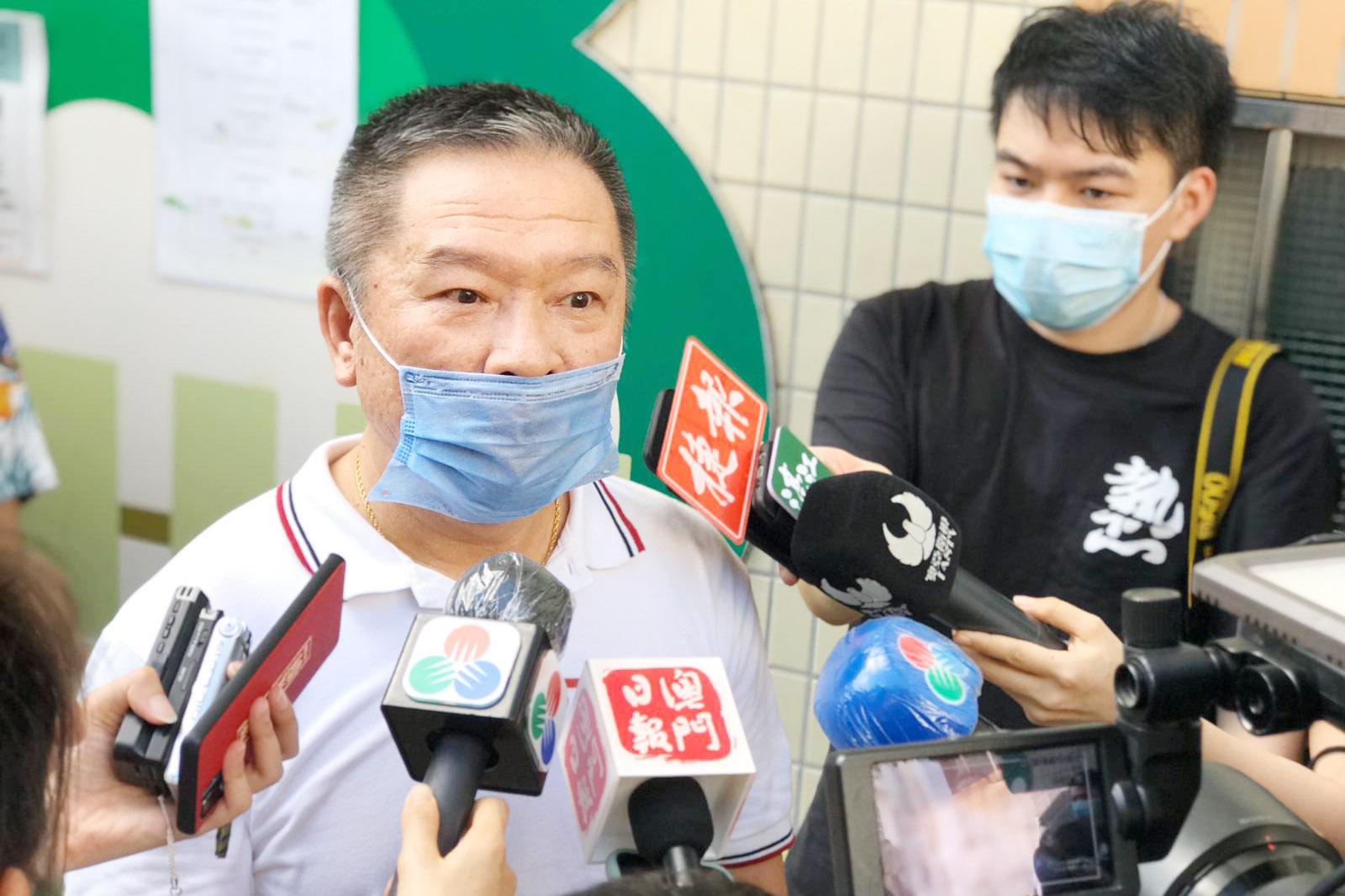 Wong Man Sang, the chairman of the Sin Fong Garden condominium owners’ management committee, spoke to reporters on the sidelines of yesterday’s flat owners’ special meeting, which took place at the Patane Residents School, which is located near the ill-fated Sin Fong Garden reconstruction project in Rua da Ribeira do Patane.