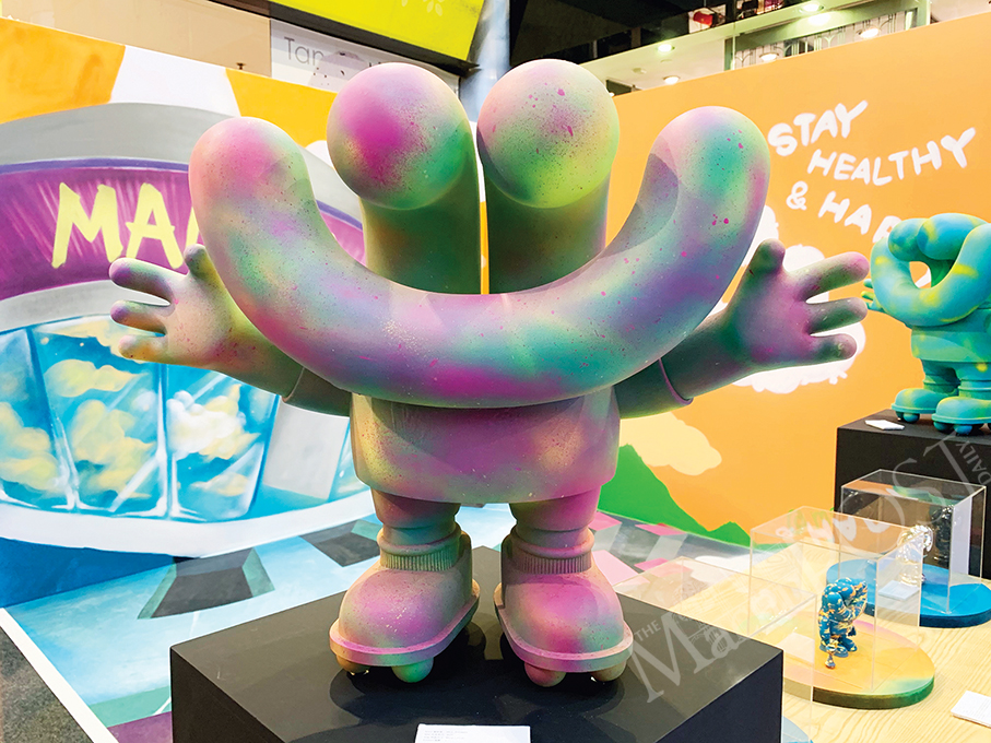 Lo and Cheong are displaying their HAPPY ZAI sculptures representing visual dialogues and depicting multi-faceted colours with the aim of bringing positive energy to all those visiting the exhibition. As the whole world has been under stress due to the COVID-19 pandemic, the artists aim to remind civil society that laughs are contagious and have multiple effects. They want to bring more laughs and positive vibes to the world to stay healthy and be happy, according a poster displayed at the exhibition.