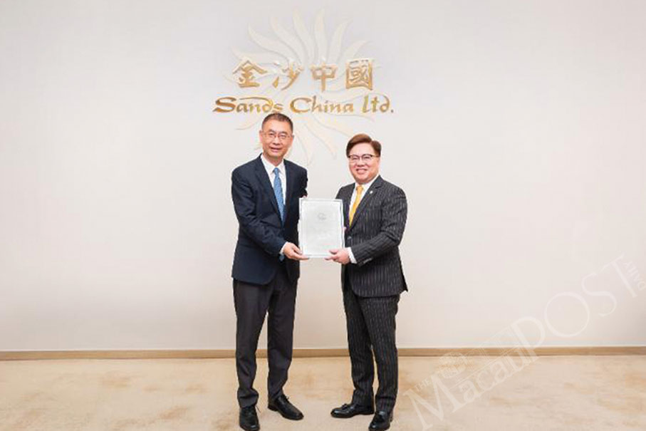 The Central People’s Government Liaison Office in the Macau Special Administrative Region (MSAR) yesterday presented a certificate of appreciation to Sands China for its support of COVID-19 relief efforts in the mainland and Macau, the US gaming operator said in a statement.