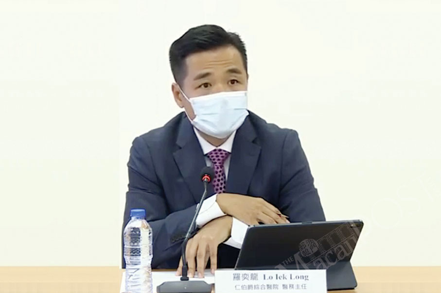 Alvis Lo Iek Long, one of the three clinical directors of the public Conde de São Januário Hospital Centre, addresses Friday’s press conference at the Health Bureau (SSM) about the city’s novel coronavirus (COVID-19) situation. Photo: GCS