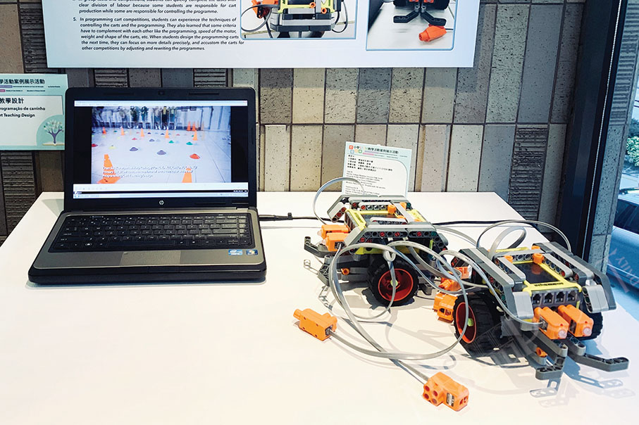 Programming cart teaching design developed by Chan Sui Ki Perpetual Help College is on display at the Centre of Educational Resources in Nam Van yesterday.