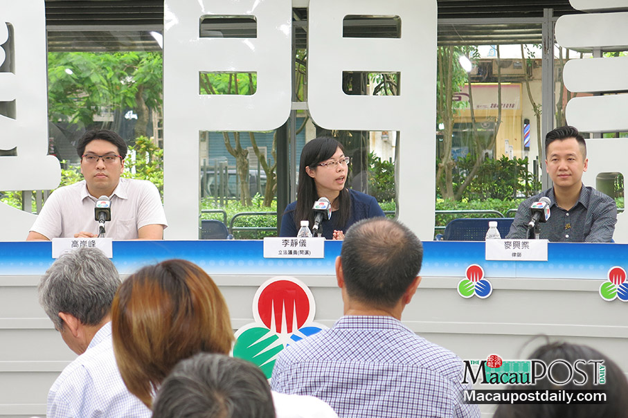 Ella Lei Cheng I (centre), a guest speaker, talks during yesterday’s TDM-hosted Macau Forum in Areia Preta while fellow guest speakers Kou Ngon Fong (left) and Mak Heng Ip look on. Photos: Ian Sio Tou