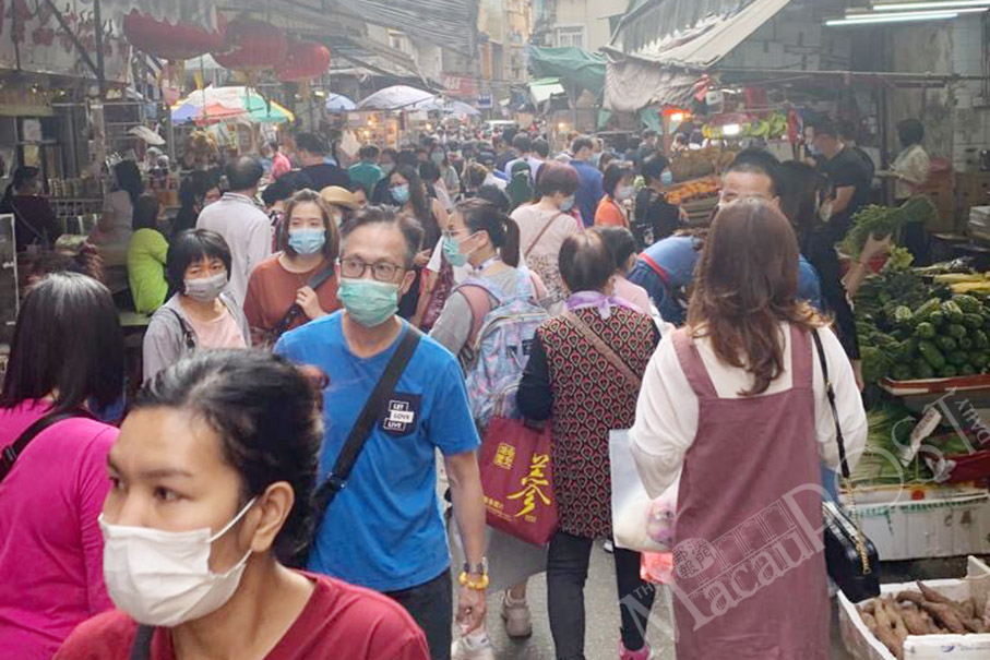 This photo taken in April shows people doing their grocery shopping in the popular Rua da Emenda (known in Cantonese as I Chi Kai). Photo: Camy Tam