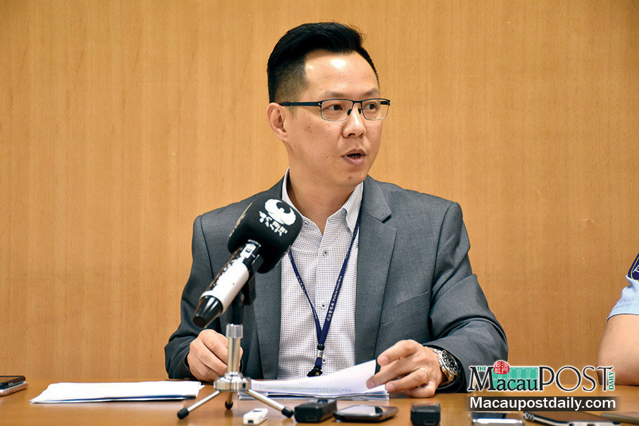 Judiciary Police (PJ) Ho Chan Nam speaks during yesterday’s press briefing at the Public Security Police (PSP) headquarters in Zape. Photo: Leong Lok Ian