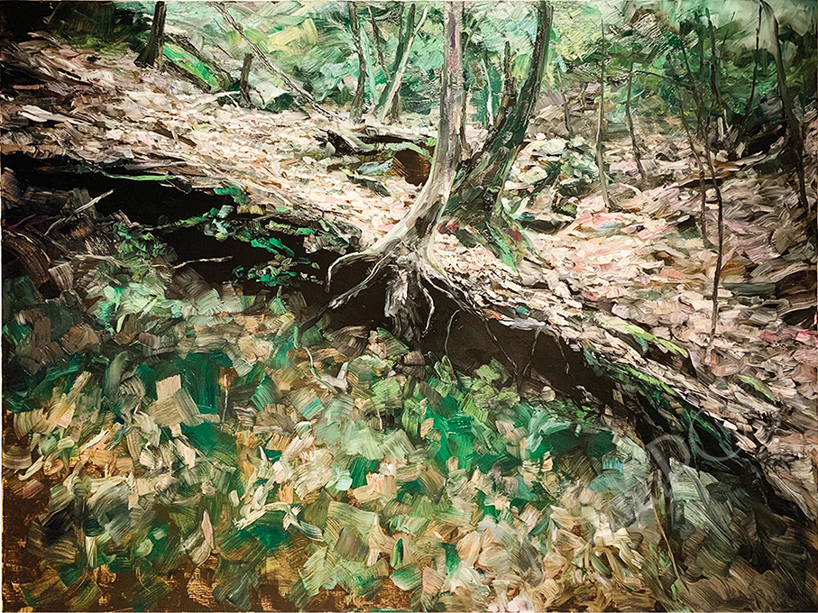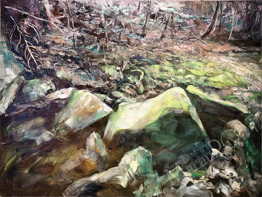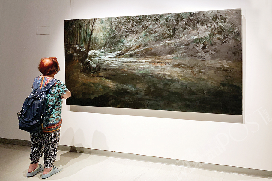The current exhibition is an attempt to “plant” a forest complete with the recordings of birds singing in the main gallery to give visitors the impression that they are visiting a forest. Lai made it a point to keep a distance between the various forest paintings in order to create a quiet space. During Sunday's sharing session Lai also showed a number of floor tiles that were exhibited at different venues over the past four years. He told his audience that every floor tile is a record of his experience, and he pointed out that the different venues presented the works in different forms. Lai told The Macau Post Daily that he will continue to explore his creations “at his own pace and according to the situation”.