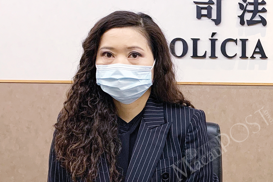 Judiciary Police (PJ) spokeswoman Lei Hon Nei poses during Wednesday’s regular press conference. Photo: Camy Tam