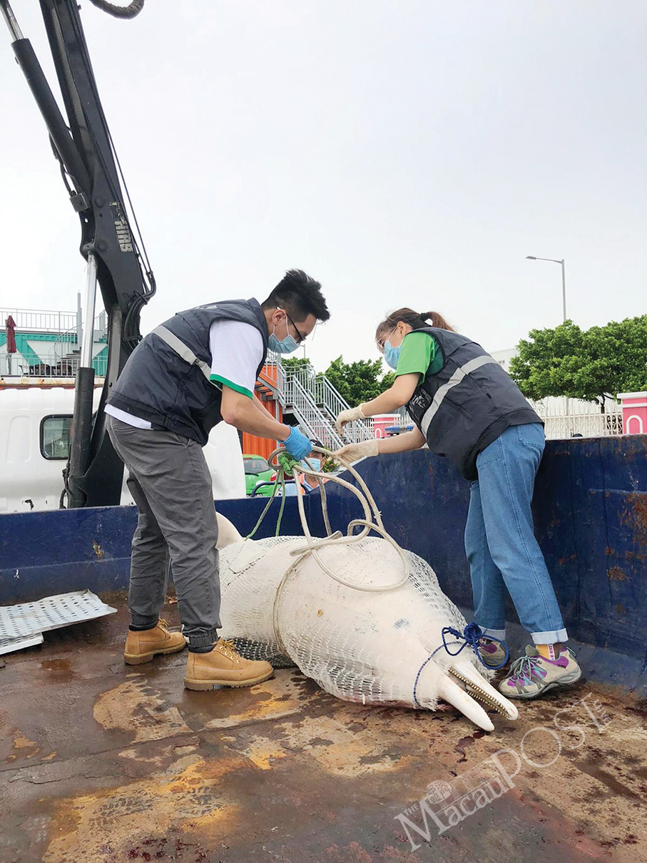 The statement said the Municipal Affairs Bureau confirmed the carcass to be of an adult female Chinese white dolphin, with a body length of 2.53 metres.
