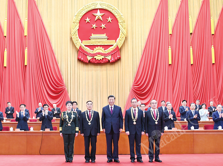 Xi Jinping, also general secretary of the Communist Party of China (CPC) Central Committee and chairman of the Central Military Commission, presented medals to recipients of the Medal of the Republic and the national honorary title at the Great Hall of the People.