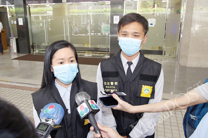 The handout photo provided by the Judiciary Police (PJ) shows Chu Wai Man, who heads the PJ Youth Concern Group, talking to the media outside the PJ headquarters in Zape yesterday.
