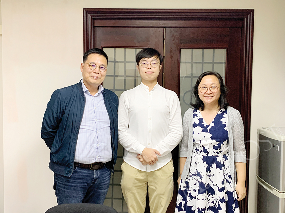 Jason Wong Tai Chao (from left to right), Cannan Wong Hou Wang and Evonne Lei Vai Fan pose for a picture at The Macau Post Daily office last week. Photo Prisca Tang