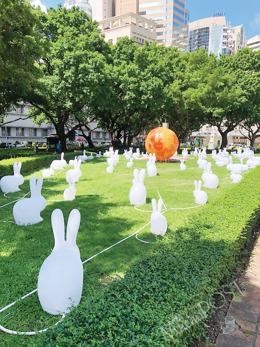 An installation with rabbit-shaped lanterns has been set up by the government on a lawn in a sitting-out area in Nam Van.