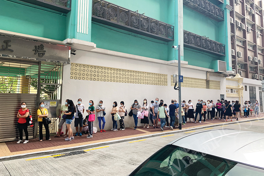 People queue outside the entrance to a school near Avenida de Horta e Costa to pick up their children. Photos taken yesterday by Sally Chong and Camy Tam