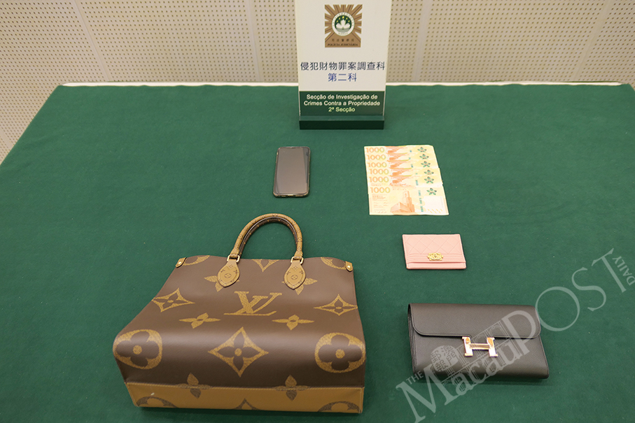 The victim reported the case to the police. She told the police that her handbag, worth 20,000 patacas, contained a purse worth 40,000 patacas, a name-card holder worth 4,000 patacas, a mobile phone worth 10,000 patacas, HK$17,000 in cash, and several credit cards, according to Sou.