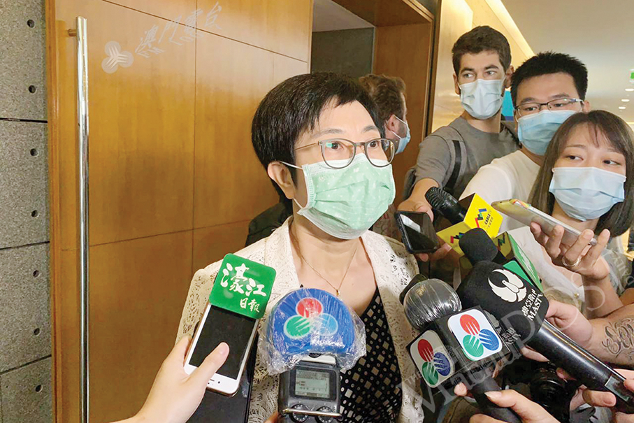 Macau Special Administrative Region Public Assets Supervision and Planning Office Director Sónia Chan Soi Fan speaks to reporters at the Macau Cultural Centre (CCM) in Nape yesterday. – Courtesy: TDM