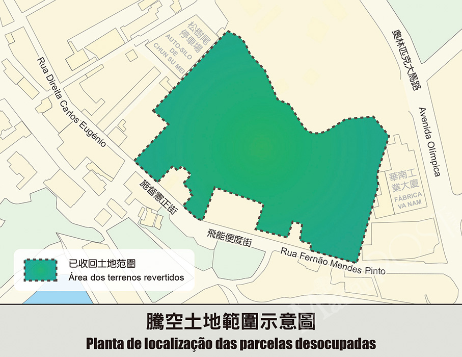 The Lands, Public Works and Transport Bureau (DSSOPT) announced this week that its officials, in conjunction with officials from several other government entities, have repossessed several plots covering a total area of 6,598 square metres on the former Iec Long Firecracker Factory site in Taipa, comprising illegally occupied ones and those whose concessions had previously been annulled by the government.