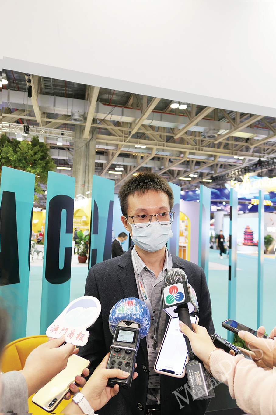 Senior Director of Ocean Engine, a company under ByteDance, Wang Jianfei, talks to reporters yesterday on the sidelines of the triple exhibition. Photo: Monica Leong