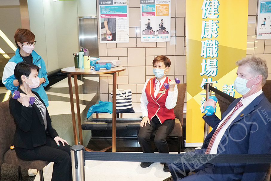 The activity, held with the support of Labour Affairs Bureau (DSAL), Macau Federation of Trade Unions (FAOM) and Women’s General Association of Macau, included seminars, design competitions, fitness classes and roadshows, to remind staff members of work safety and personal wellness.
