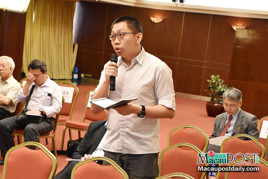 Lam Iet Chit, a member of the government-appointed Urban Planning Council (CPU), speaks during yesterday’s consultative session for the government’s Five-Year Development Plan at the World Trade Centre. – Photo: Leong Lok Ian