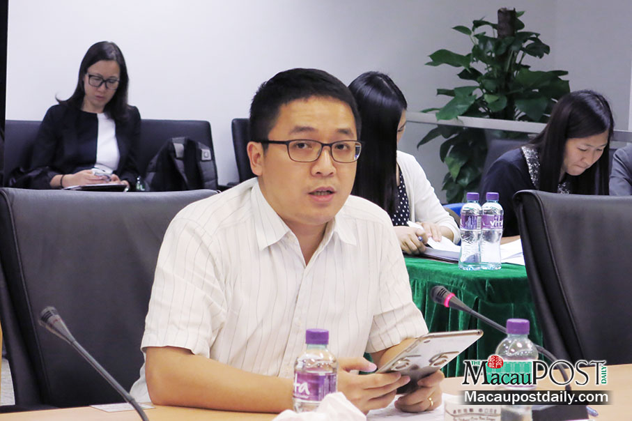 Government-appointed Central Districts Community Service Consultative Council member Ron Lam U Tou talks during yesterday’s council meeting at the government’s Service Centre in Rotunda de Carlos da Maia. Photo: Ian Sio Tou