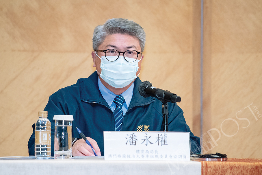 Sports Bureau (ID) President and Macau Grand Prix Organising Committee Coordinator Pun Weng Kun addresses yesterday’s press conference. Photo: GCS
