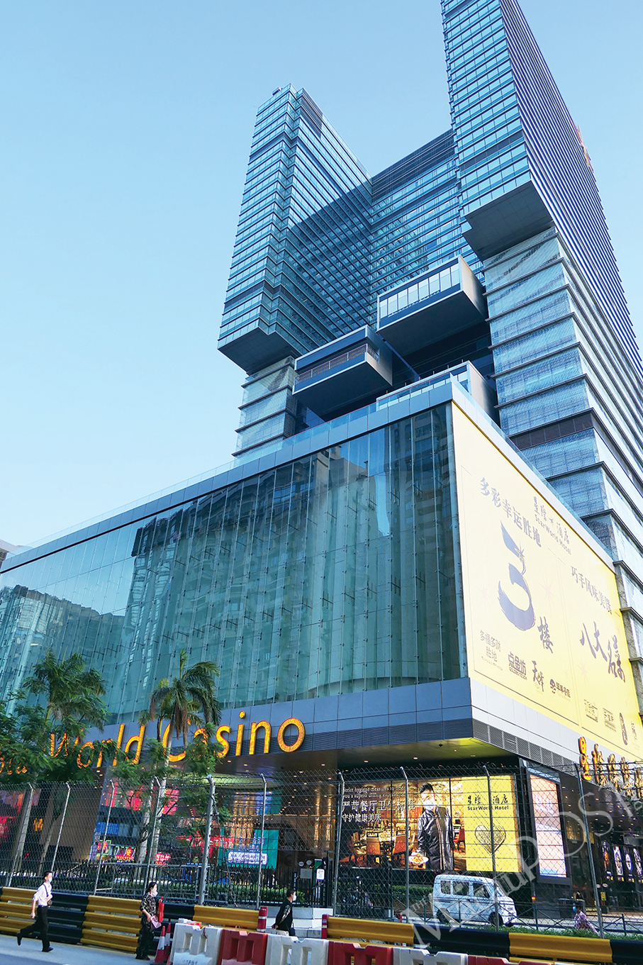 Pedestrians walk past Galaxy Entertainment Group’s (GEG) StarWorld casino-hotel in Nape yesterday. – Photo: Iong Tat Choi
