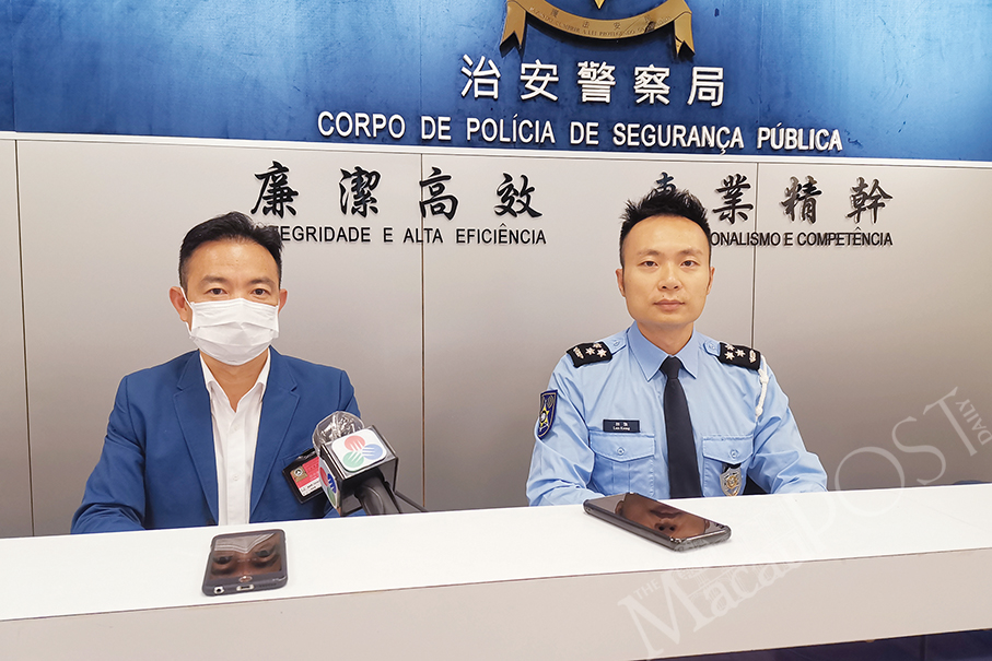 Judiciary Police (PJ) spokesmen Cheong Kam Fai poses during yesterday’s press conference. Photo: Iong Tat Choi