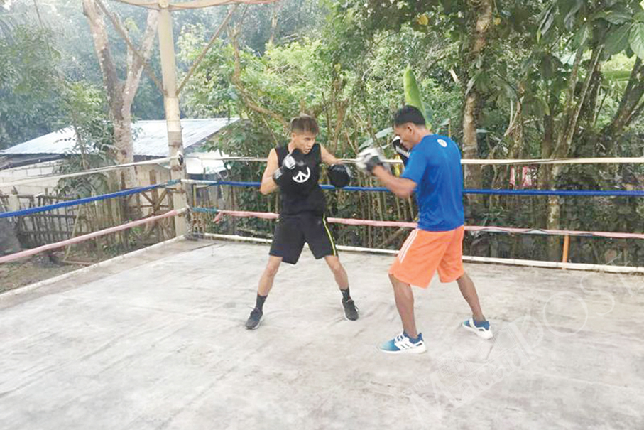 Cheong Lap Cheong (left) training in Cavite, Philippines, at the end of last year. Photo supplied by Macao Boxing House.