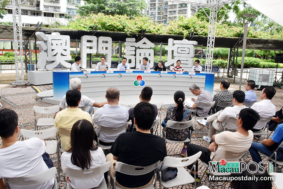 Over a dozen residents attend yesterday’s open-air debate programme in Areia Preta Park. – Photo: Leong Lok Ian