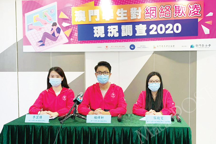 The General Association of Chinese Students of Macau (AECM) surveyed 3,690 pupils, 10 percent of whom said that they had been cyberbullied, a statement provided by the group during a press conference at Wa Long Industrial Building yesterday.