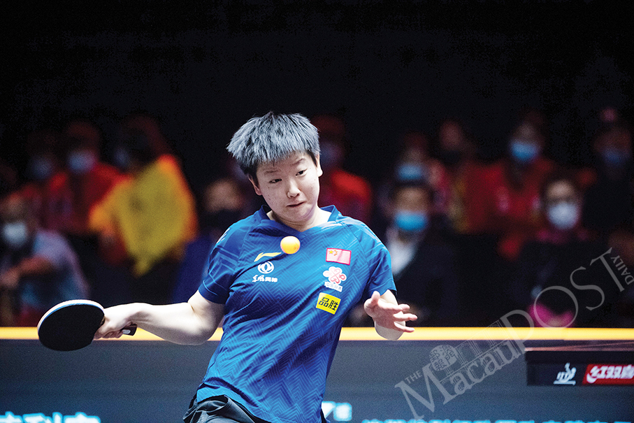 Sun Yingsha of the mainland returns the ball during the women’s singles final against compatriot Chen Xingtong at World Table Tennis (WTT) Macau 2020 Tournament in Tap Seac Multisport Pavilion yesterday.