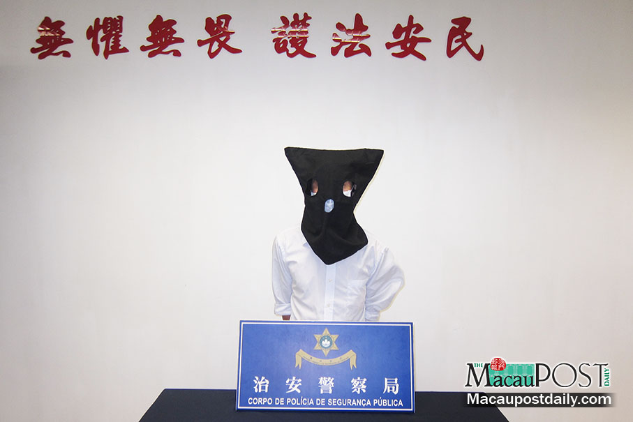 This undated handout photo provided by the Public Security Police (PSP) yesterday shows the kidnapping suspect posing in a pressroom at a police station.