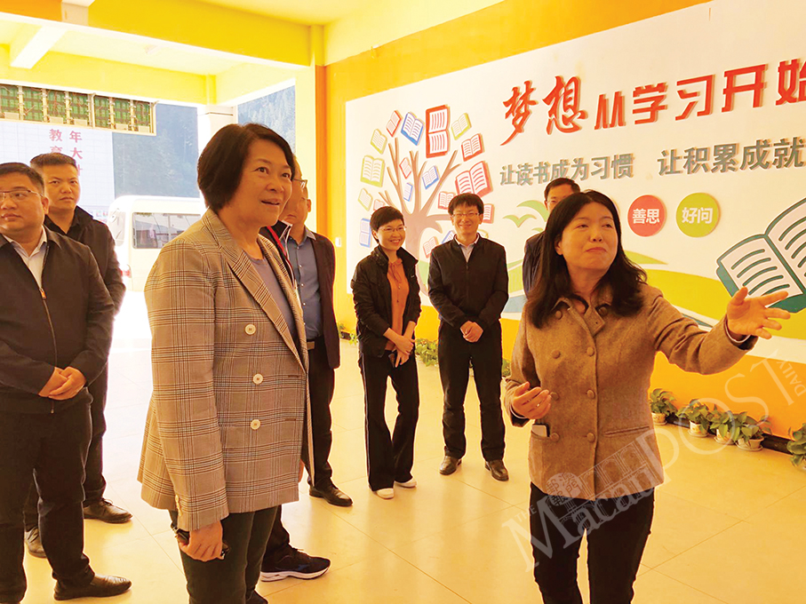 Central People’s Government Liaison Office in the MSAR Vice Director Yan Zhichan (left) visits Congjiang’s Dadai Primary School, which was built by Macau as part of its effort to help Congjiang tackle poverty, last month.