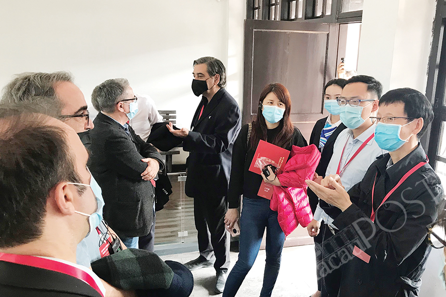 Yin Rutao (first from right), deputy director-general of the Department of Publicity and Culture of the Central People’s Government Liaison Office in the Macau Special Administrative Region (MSAR), talks to Portuguese- and English-language media journalists from Macau during a visit to the Huangpu Military Academy Memorial Hall in Guangzhou yesterday. Yin explained the historical significance of the academy to the journalists. At the invitation of the Liaison Office, 15 English- and Portuguese-language media journalists began a four-day fact-finding trip to five cities in the Greater Bay Area (GBA) yesterday morning. Apart from Guangzhou, the delegation will also visit the cities of Zhaoqing, Kai Ping, Jiangmen and Xinhui. The delegation also includes officials from the Liaison Office, Macau Government Information Bureau (GCS) and Office of the Commissioner of the Ministry of Foreign Affairs in the MSAR, as well as information officials from the five GBA cities and seven Guangdong Radio and Television staff members. The delegation is slated to arrive back in Macau on Saturday evening.