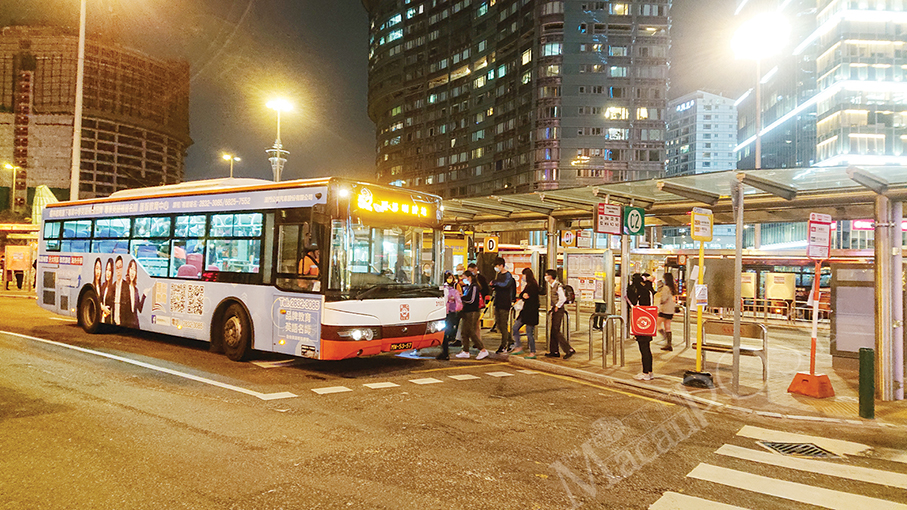Passengers get on a public bus at the bus terminal in Praça de Ferreira do Amaral – colloquially known in Cantonese simply as “A Ma La” – last night.