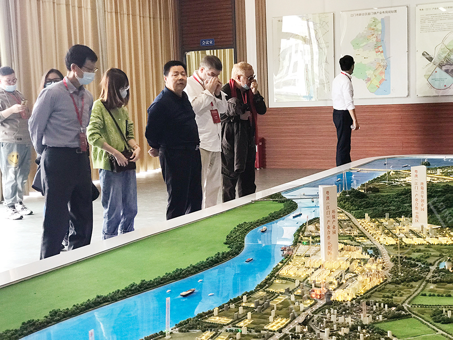 Members of the delegation visit the Guangdong Macau (Jiangmen) Industrial Cooperation Demonstration Zone display room during last week’s trip.